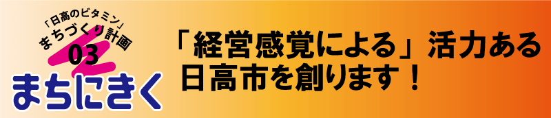 市内の中小企業の交流の機会を増やし、「協働による収益性の向上と魅力ある産業振興」を目指します。また巾着田・日和田山をはじめとした多彩な観光資源の活用により、市内事業者と日高市民が、「協働できるまちづくり」を目指し、皆さまの声を聞いていきます。